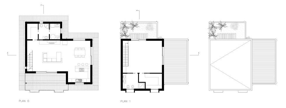 Tre volumi puri, alternati nelle due tonalità di grigio, si compongono dando vita a grandi spazi liberi e aperti. Sia la zona giorno, al piano terra, che la camera, al piano primo, sono due grandi spazi dilatati, che si affacciano sull’esterno con grandi vetrate. Gli spazi secondari invece sono compressi e organizzati per ricoprire eminentemente il ruolo dato dalla propria funzione.